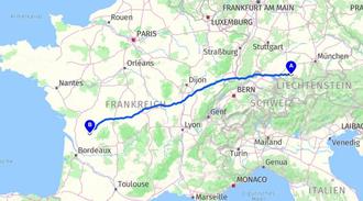 Von Kempten aus führte die Strecke über den Bodensee, den Rhein und durch die Schweiz nach Frankreich. Highlights waren unter anderem die Rhein-Fälle, die Städte Basel, Dijon und Limoges sowie idyllische Flusslandschaften an Doubs, Rhône und Loire. Unterwegs erlebten die beiden immer wieder große Gastfreundschaft – ob bei hilfsbereiten Einheimischen, die mit einer Reparatur aushalfen, oder bei herzlichen Gastgebern, die Unterkunft boten.