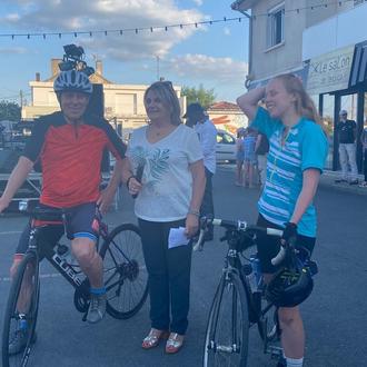 Nach der letzten Etappe wurden Vater und Tochter in Saint-Michel mit Applaus und einer Rede der Bürgermeisterin empfangen – ein würdiger Abschluss für ihre „Fahrt für den Frieden“, die auch Spenden für die Lebenshilfe sammelt.