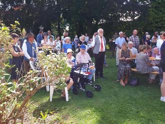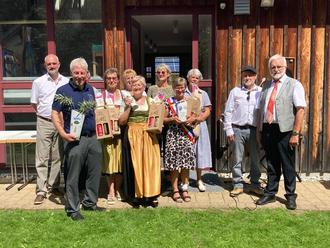 Am Sonntag nach dem festlichen Gottesdienst, zelebriert von Pfr. Drischberger und seinem französischen Amtskollegen Pater Claude, musikalisch mitgestaltet vom Chorale d'Entraygues, begleitet von Andreas Ferdinand und Martin Mühlegger zogen die Teilnehmer mit Fahnenabordnungen und Musikkapelle zum Pfarrgarten, wo die Franzosen bereits einen Aperitif mit französischen Spezialitäten für die ganze Gemeinde vorbereitet hatten.