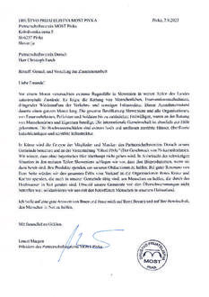 Hier der Brief des Vorsitzenden des Partnerschaftsvereins Pivka Ernest Margon.