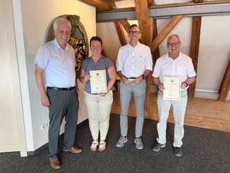 v.l.n.r. Erster Bürgermeister Gerhard Hock, Erika Feleki Michael Bühler, Alfred Scheck