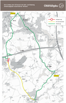 Eine großräumige Umleitung über Sulzberg, Sulzberg-Ried und Durach wird für die Dauer der Vollsperrung eingerichtet (siehe Umleitungsplan).
