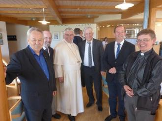 v.li. Msgr. Josef Hochenauer, Pfarrer Josef Gomm, Abt Hermann Josef Kugler, Bgm. Gerhard Hock, PGR-Vorsitzender Helmut Karg und Dekan Bernhard Hesse