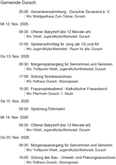 | 20:00 | Generalversammlung - Duracher Duranand e. V. |