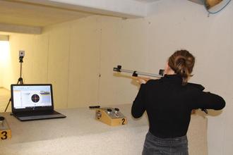Womit: das sog. Lichtgewehr erfasst per Lichtpunkt auf einer elektronischen Scheibe den Treffer und ist schon ab 6 Jahren zugelassen.