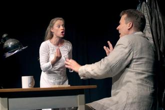 Mit großer Spielfreude zeigen Anja Klawun und Thomas Luft die sehr witzigen Situationen, die während der Probenphase von Goethes „Faust“ zwischen Regisseur und Schauspielerin entstehen. Dabei geht es um die Seiten 89 folgende des nicht nur Schülern bekannten Reclam Hefts zu Goethes Faust.