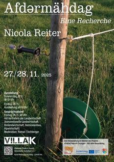 Die Allgäuer Gestalterin und Künstlerin Nicola Reiter beschäftigt sich in ihrem Projekt Afdermähdag mit den landwirtschaftlichen Strukturen ihrer Umgebung im Allgäu. Seit 2021 entstehen Landschaftsfotografien, die Spuren landwirtschaftlicher Arbeit zeigen. Außerdem besucht Nicola Reiter Landwirtsfamilien, spricht mit ihnen über ihre Arbeit und ihre Höfe, und porträtiert sie bei ihren Tätigkeiten.