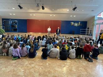 Passend zum Vorlesetag am 17. November starteten wir mit unserem Lesewettbewerb und führten am vergangenen Freitag die Endrunde durch. Die Kinder der 2.- 4. Klassen hatten über die Herbstferien fleißig geübt und anschließend in den Klassen vorgelesen, so dass es nicht leicht fiel zu entscheiden, wer dieses Mal die Klasse in der Zwischenrunde vertreten sollte. Schließlich traten dann die 18 Klassensieger (2a: Bruno Kinast, Maximilian Unterleitner, 2b: Lukas Ackermann, Emilia Anwander, 2c: Matteo Brosch, Valentin Gudermann, 3a: Nina Hägele, Vedad Kadic, 3b: Zoe Hübner, Manuel Eltrich, 3c: Michael Götzeler, Anna Baumgärtel, 4a: Noah Yagci, Lotta Mauderer, 4b: Mateo Hailer, Sophia Haslach, 4c: Jonas Rietzler, Alex Briechle) gegeneinander an und beeindruckten durch ihren Mut und durch ihr Können.