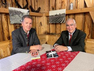 Zu einem gemütlichen „Huigarte“ trafen sich im Rahmen der TV-Aufnahmen für das Projekt „Huigarte in der Stube“, von links Gastgeber und 2. Vorsitzender Max Adolf und der ehemalige Bundesfinanzminister Dr. Theo Waigel aus Seeg.