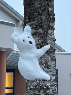 Ein Koala - Bärchen aus Schnee und Eis ziert derzeit im Eingangsbereich des Seniorenzentrum Durach, Am Leitenacker 9 einen Baum.