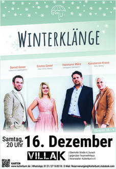 „Winterklänge“ mit dem Ensemble „Paraplui“ Mit „Winterklänge“ gibt es eine neue Konzertreihe des Ensembles „Paraplui“. So nennt sich ein „vielsaitiges“ und dynamisches Ensemble aus dem Allgäu.