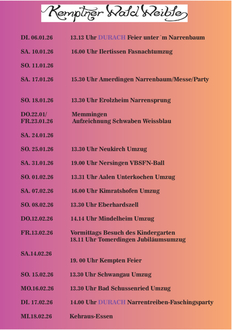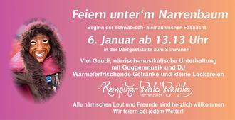 Heuer freuen wir uns ganz besonders darauf, den Startschuss in die so genannte 5. Jahreszeit hier im Ort zu zelebrieren. Wir laden alle Närrinnen und Narren herzlich ein, mit uns am 6. Januar ab 13.13 Uhr im Gasthof zum Schwanen (Innenhof) in die Fasnet/Faschingssaison 2026 zu starten.