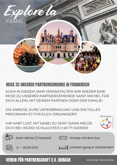 Wir freuen uns über interessierte Duracher, die gerne unsere Partnergemeinde St. Michel in der Charente kennenlernen möchten.