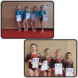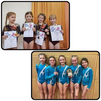 Am längsten auf ihren Einsatz mussten die Mädchen Jahrgang 2015 warten. Katharina, Anja, Nina und Lisihana zeigten schöne Übungen und konnten viele Punkte gutmachen, obwohl ihre Mannschaft aufgrund von Krankheit kleiner war als geplant. Die Mädchen konnten erstmals schwierige Elemente wie Handstand auf dem Schwebebalken oder Radwende am Boden zeigen und erstritten sich damit den 6. Platz.