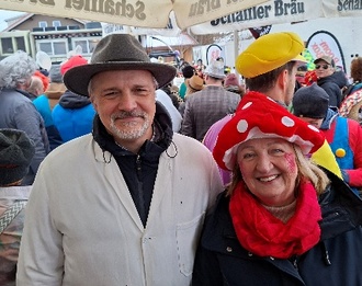 Auch das wechselhafte Wetter konnte den Feiernden am Faschingsdienstag nicht die Laune verderben. Besonders die mitreißende Guggenmusik sorgte für Begeisterung unter den Gästen. Markus Kubatschka kam als Chemie Lehrer.