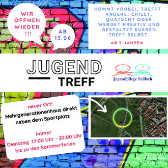 Nach den Pfingstferien öffnen wir den Jugendtreff am Mehrgenerationen Haus in Seßlach am Sportplatz. Immer Dienstags von 17:00 bis 20:00 Uhr können alle Kids und Jugendliche ab 9 Jahren vorbeikommen. Das Programm dürft ihr mitgestalten. Kommt vorbei, wir freuen uns auf euch.