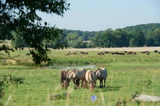 In der Bischofsau kommen zur Beweidung genügsame Konikpferde und robuste Heckrinder zum Einsatz