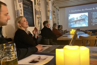 Initiative Rodachtal - Mit großer Offenheit berichteten Alexandra Müller-Röhr und Alexander Stülb am 13. November 2023 im Bauherrengespräch der Initiative Rodachtal über die Sanierung ihres preisgekrönten Dreiseithofes in Herreth. Der gegenseitige Erfahrungsaustausch der Baukulturpreisträger 2022 und der Teilnehmenden in der Alten Schule in Welsberg war sehr intensiv, familiär und manch neuer Kontakt konnte geknüpft werden. Die Leitprojektpatin für Bauen und Wohnen, Itzgrunds Bürgermeisterin Nina Liebermann und die Geschäftsstellenleiterin der Initiative Rodachtal, Martina Rohner, durften unter den Gästen auch Professor Roger Karbe / Hochschule Coburg und Otto-Friedrich-Universität Bamberg (Master Denkmalpflege) begrüßen. Dieser beleuchtete historische Aspekte, insbesondere des fränkischen Fachwerks, und gab praktische Tipps zur Vorgehensweise bei der Sanierung historischer Gebäude. Der Obst- und Gartenbauverein Welsberg hatte die Räumlichkeiten in der Alten Schule für die Veranstaltung zur Verfügung gestellt.