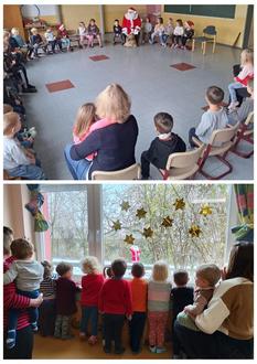 Wie jedes Jahr besuchte uns auch in diesem Jahr wieder der Nikolaus. Die Schulanfänger und die Kinder aus der Sonnenscheingruppe begrüßten ihn im Turnraum und sangen ihm ein Lied. Jedes Kind bekam ein kleines Geschenk. Die Kinder aus der Regenbogengruppe betrachteten den Nikolaus vom Fenster aus. Hier stellte er den großen Geschenkesack vor der Tür ab. Vielen lieben Dank an Gerhard Jöchner, der uns schon viele Jahre als Nikolaus besucht und unseren Kindern wieder einmal sehr viel Freude bereitete.
