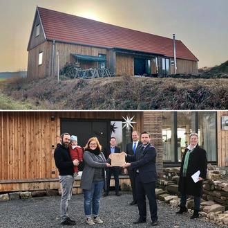 Auf ihrer Suche nach einem passenden neuen Zuhause im Raum Bad Rodach vor sechs Jahren überzeugte Mirka und Jürgen Schröder in Rudelsdorf nicht nur der attraktive Baugrund am Ortsrand, sondern eine aktive und aufgeschlossene Dorfgemeinschaft. Mit viel Eigenleistung baute das Paar gemeinsam mit Familie, Freunden und Nachbarn elf Monate an ihrem Traumhaus. Heute ziert die ehemalige Baulücke ein langgestreckter Baukörper, der aufgrund des ökologischen Baumaterials – Lehm und Holz - und der Formensprache an eine traditionelle Scheune erinnert und als Wohnhaus dient. Die Innenräume sind großzügig und modern gestaltet. Eine weitere Besonderheit: das Haus kann modular erweitert werden und bei Bedarf zum Zwei- oder Dreiseithof entwickelt werden. Das Objekt wurde mit dem Baukulturpreis 2020 der Initiative Rodachtal ausgezeichnet.