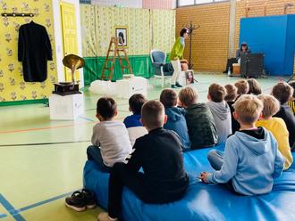 Wer war eigentlich Beethoven, und was macht ein Orchester? Die Theaterproduktion Nimmerland hat die Schülerinnen und Schüler der 1. - 6. Klasse in ihrer Aufführung in die Welt der Musik mitgenommen. Ganz nebenbei lernten sie die Instrumente und die Sitzordnung in einem Orchester kennen. Es war ein lehrreiches und gleichzeitig witziges Theaterstück, welches die Theaterproduktion kindgerecht und mitreißend in unserer Schulturnhalle zum Besten gab.