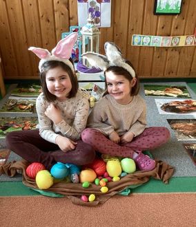 Die Kuschelbären, Schnatterenten, Krabbelkäfer und Blubberfische, die Mäuse, Eulen, Hasen, Frösche, sowie unser Igelhaus und die Füchse im Wald wünschen Ihnen allen ein wunderschönes frühlingshaftes Osterfest.