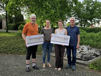 Knapp fünf Wochen ist es her, dass die Musikerinnen und Musiker der Musikvereinigung Ebensfeld die Osterfeierlichkeiten musikalisch mit ihrem Benefizkonzert haben ausklingen lassen. Am Abend des Ostermontags lauschte die voll besetzte Ebensfelder Pfarrkirche einem einstündigen Programm des Blasorchesters unter der Leitung von Kathrin Motschenbacher, welches Titel wie „Ben Hur“ oder auch die „Rhapsody for Flute“ umfasste. Nun konnte endlich der Erlös des Konzerts an die Empfänger überbracht werden. Bei einem gemeinsamen Termin am vergangenen Dienstag nahmen die Verantwortlichen der Stiftung „Unser Markt Ebensfeld“ und des Vereins „Kivuko e.V.“ den großzügigen Erlös freudestrahlend entgegen. Jeweils 778€ konnten erster Vorsitzender der MVE Rudolf Dierauf und Dirigentin Kathrin Motschenbacher an Bernhard Storath von der Stiftung und Corinna Hassler von Kivuko übergeben.