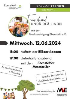 Mittwoch, 12. Juni, 18.00 Uhr: Feierohmd undä deä Lindn mit der Musikvereinigung Ebensfeld e.V.