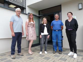 Dem schlossen sich die geschäftsleitende Beamtin Katrin Lienert (rechts), der Personalratsvorsitzende Stefan Reutter (2. v. rechts) und Roswitha Merklein von der Kämmerei (2. v. links) an.