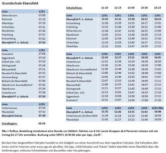 Zum Start ins neue Schuljahr am 10.09.2024 geben wir nachfolgend die Abfahrtszeiten des ÖPNV zur Pater-Lunkenbein-Schule Ebensfeld bzw. zur Adam-Riese-Schule Bad Staffelstein bekannt.