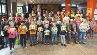 Beim Besuch der Pater-Lunkenbein-Schule in Ebensfeld unterstützte 1. Bürgermeister Bernhard Storath die Raiffeisen-Volksbank Bad Staffelstein. Jürgen Rohner, Kundenberater in der Geschäftsstelle Ebensfeld, erklärte den Kindern, wie wichtig es ist, die Umwelt zu schützen und wie die Erstklässler helfen können. Anschließend wurden die Emil-Sets verteilt, über welche sich die Kinder sehr freuten.