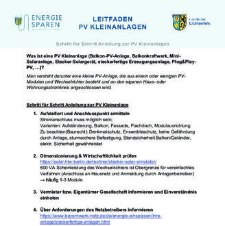 Dann nutzen Sie doch unseren Flyer in nur 10 Schritten zur PV Kleinanlage.