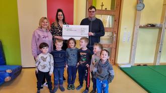 Die Mädchen und Buben sowie das Personal von der Kindertagesstätte St. Josef haben sich über einen Scheck in Höhe von 500 € sehr gefreut. Gespendet wurde der Geldbetrag von zwei örtlichen Gewerbetreibenden aus Kleukheim. Indem sie auf Weihnachtsgeschenke an die Kunden verzichteten, beschlossen die „zwei“ den Betrag an die Kita zu übergeben. Verbunden mit einem herzlichen Dankeschön, frohe Weihnachten und ein gutes neues Jahr.