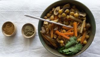 | - wechselnden Gewürzen, zum Beispiel asiatisch mit Curry(paste) und / oder Sojasauce oder orientalisch angehaucht mit Za’atar und Ras el Hanout. |