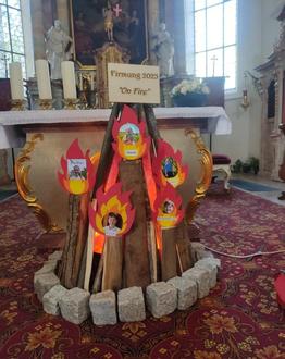 Weiter ging es bei uns mit dem Jugendgottesdienst mit Firmvorstellung mit dem Thema „on Fire“, hat uns sehr gefreut eine so volle Kirche gehabt zu haben.
