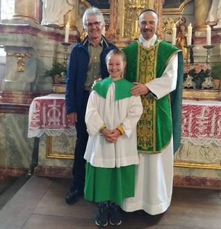 Pater Christoph übergab ihr den Ministrantenkragen dafür als Zeichen.