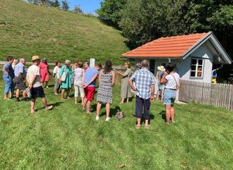 Die Führung endete mit der Besichtigung des „Bienahäusle“, welches früher in Lampolz stand. Es wurde in den 1940-er Jahren von dem damals sechzehnjährigen Erwin Ohneberg neben dem elterlichen Hof errichtet. Das Hauptgebäude nutzt die Museumsimkerei noch heute für die Honigproduktion.