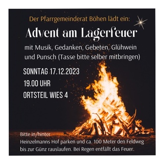 So.17.12.23, 19.00 Uhr Advent am Lagerfeuer, Ortsteil Wies