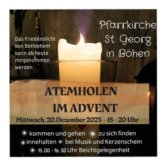 Mi.20.12.23, 15.00 – 20.00 Uhr Atemholen im Advent, Pfarrkirche,