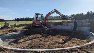 Noch im November wollen wir, wenn das Wetter mitspielt, pflastern, den fehlenden Riesel einbringen und die Sandanlage fertigstellen.