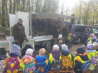 In einem extra für Schulen und Kindergärten eingerichteten Wildlandmobil vom BJV konnten die Kinder den Lebensbereich heimischer Wildarten aus Wald, Luft und Wasser bestaunen.