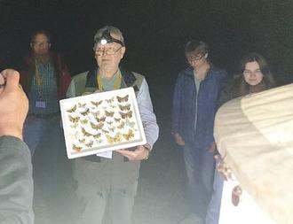 Hans-Peter Schreier von der Arbeitsgemeinschaft Bayerischer Entomologen demonstriert die Vielfalt von Nachtfaltern beim Lichtfang.