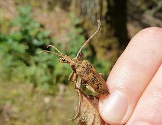 Die Larven des als gefährdet eingestuften Großen Laubholz-Zangenbocks sind vor allem auf abgestorbene Eichen angewiesen - die Hauptbaumart der fränkischen Mittelwälder.