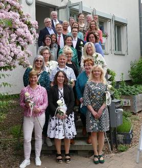 Das obligatorische Foto auf der Schultreppe gemeinsam mit den Lehrkräften und Ehrengästen.