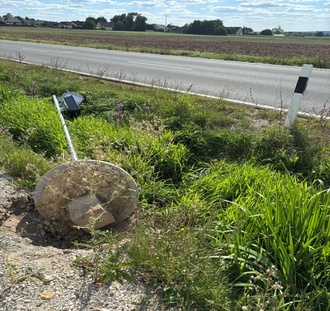 Nach dem Kirchweihwochenende in Poxdorf wurde das Verkehrsdisplay in der Sendelbacher Straße samt Fundament mutwillig herausgerissen und im Straßengraben vorgefunden. Die Tat muss in der Nacht von Samstag, 16.08.2025 auf Sonntag, 17.08.2025 stattgefunden haben. Der Tatzeitraum lag vermutlich zwischen 3:00 Uhr und 5.00 Uhr morgens.