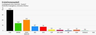 | ÖDP | Sandmann Sarah | 22 | 2,1 % | 17 | 1,6 % | 39 | 1,9 % |