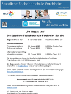 Einen ersten Eindruck unserer Schule gewinnen Sie über unsere Homepage: www.fos-forchheim.de