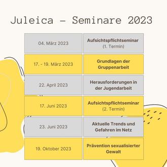 Die Juleica-Grundausbildung umfasst 34 Zeitstunden und beinhaltet bei uns folgende Seminare: