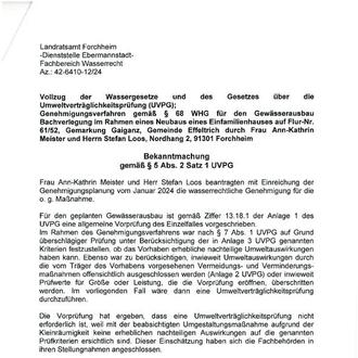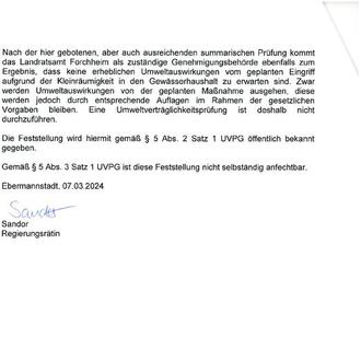 Bekanntmachung gemäß § 5 Abs. 2 Satz 1 UVPG