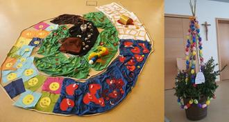 Begleitet wurde die Geschichte mit Liedern, Gebeten, Spielen und natürlich auch mit Bastelaktionen. Jedes Kind hat eine kleine Raupe, die dann zum Schmetterling wurde, gebastelt und gemeinsam haben wir einen kleinen Osterbrunnen geschmückt.